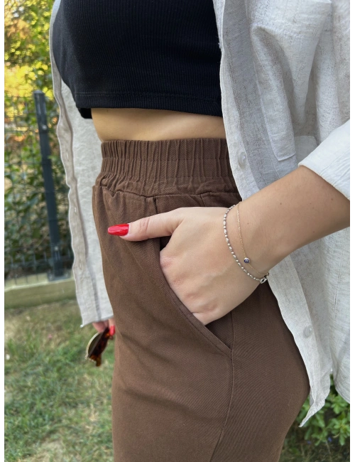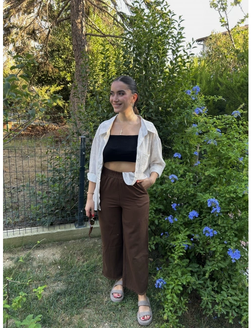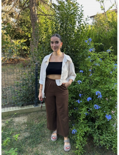 Kahverengi Rahat Kesim Palazzo Pantolon