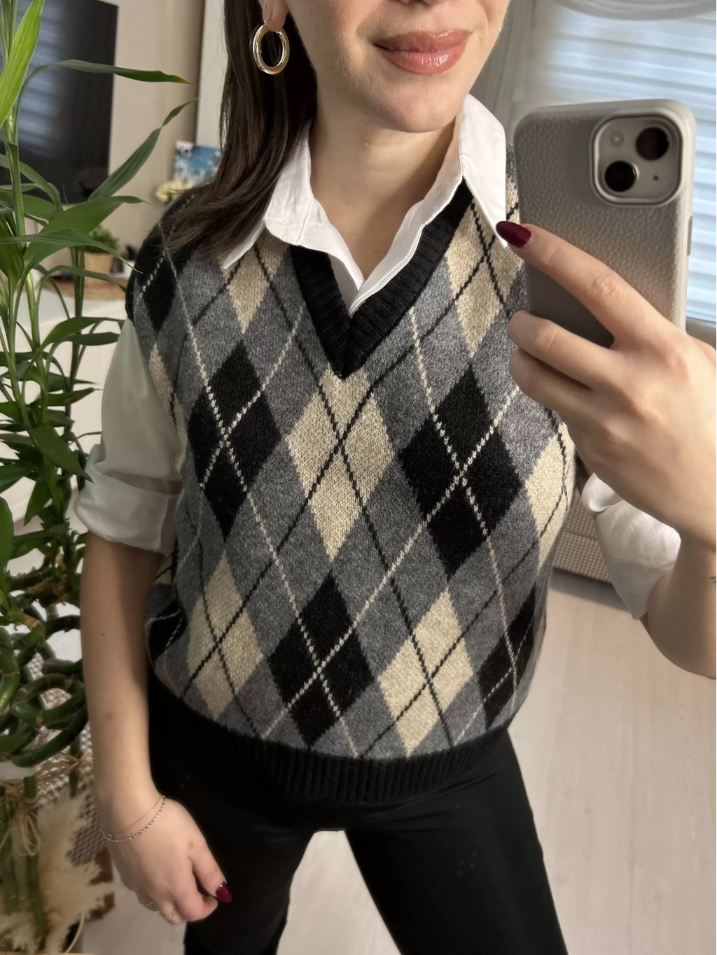 V yaka formu ile gömlekler ve basic tişörtlerle kolayca kombinlenebilir. Yumuşak dokulu triko kumaşı sayesinde konforlu bir kullanım sağlar. Klasik baklava desenli tasarımıyla zamansız bir stil elde etmenize yardımcı olur.