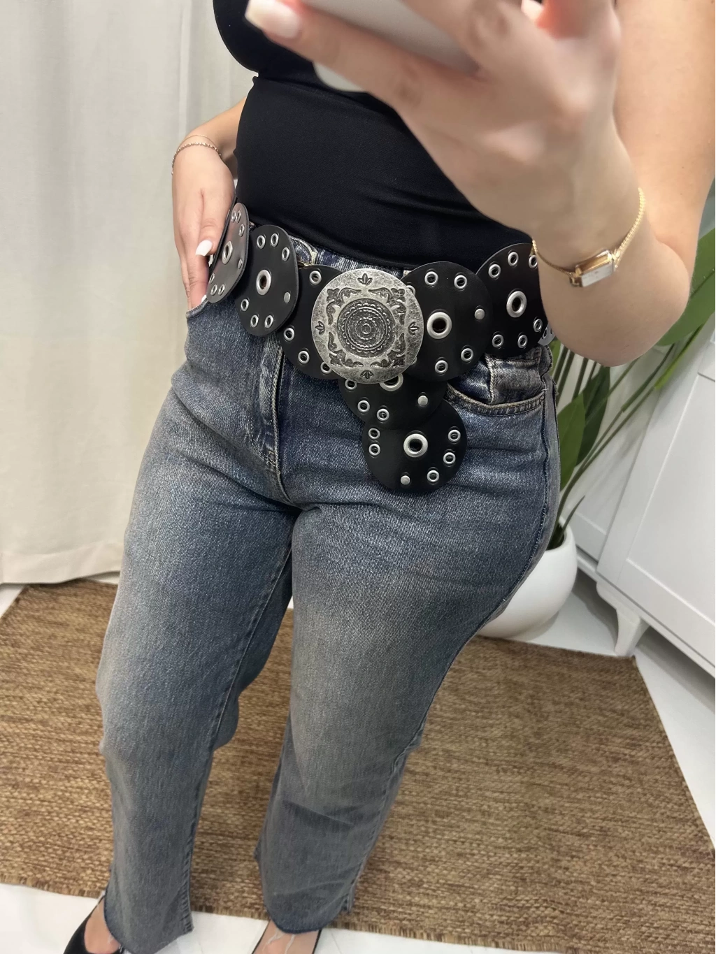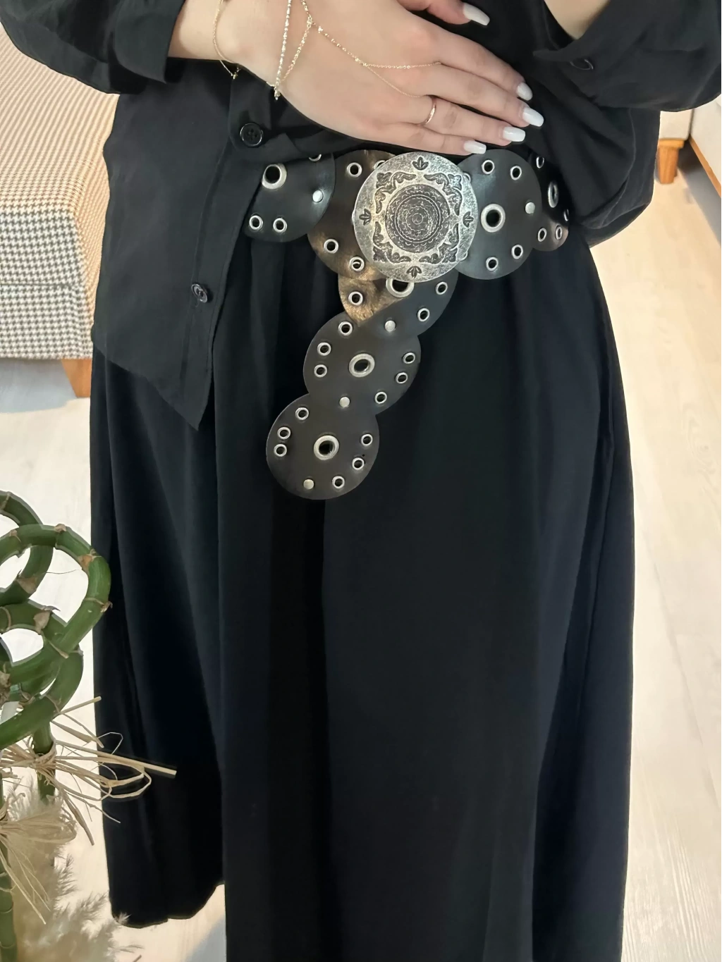 Delikli tasarımı ve büyük metal tokasıyla dikkat çeken bu siyah kemer, hem jean hem elbiselerle uyum sağlar. Kaliteli malzemesi sayesinde uzun süre formunu korur. Günlük veya şık kombinlerde rahatlıkla kullanılabilir.