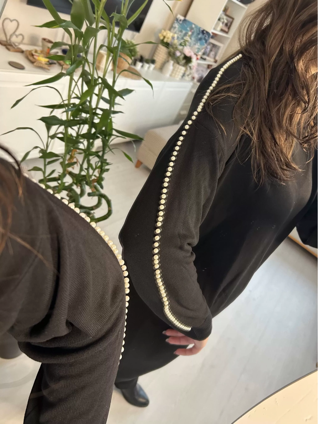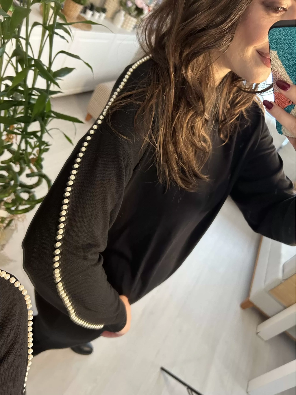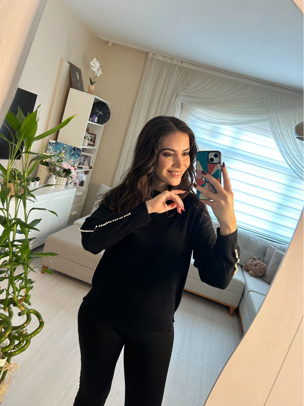 Selen Fashion'ın zarif ve modern tasarımlarından biri olan İnci Detaylı Siyah Triko Kazak, kol kısmındaki inci işlemeleriyle dikkat çekiyor. Yumuşak triko kumaşıyla konforu ön planda tutan bu kazak, her mevsim gardırobunuzun vazgeçilmezi olacak.