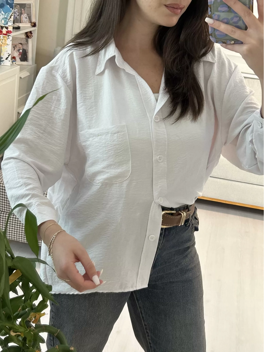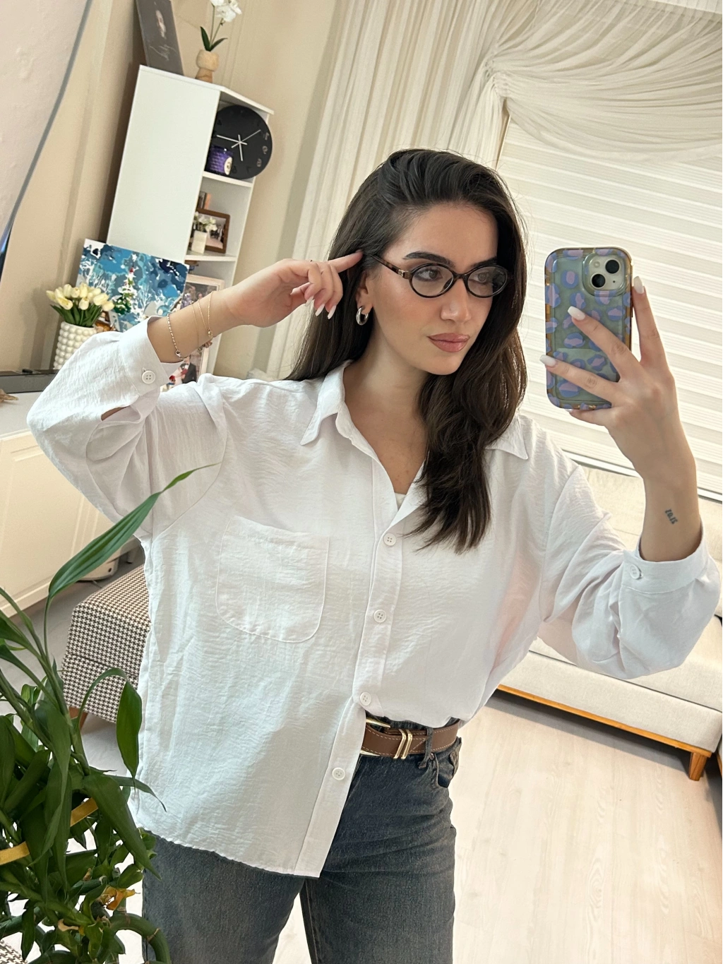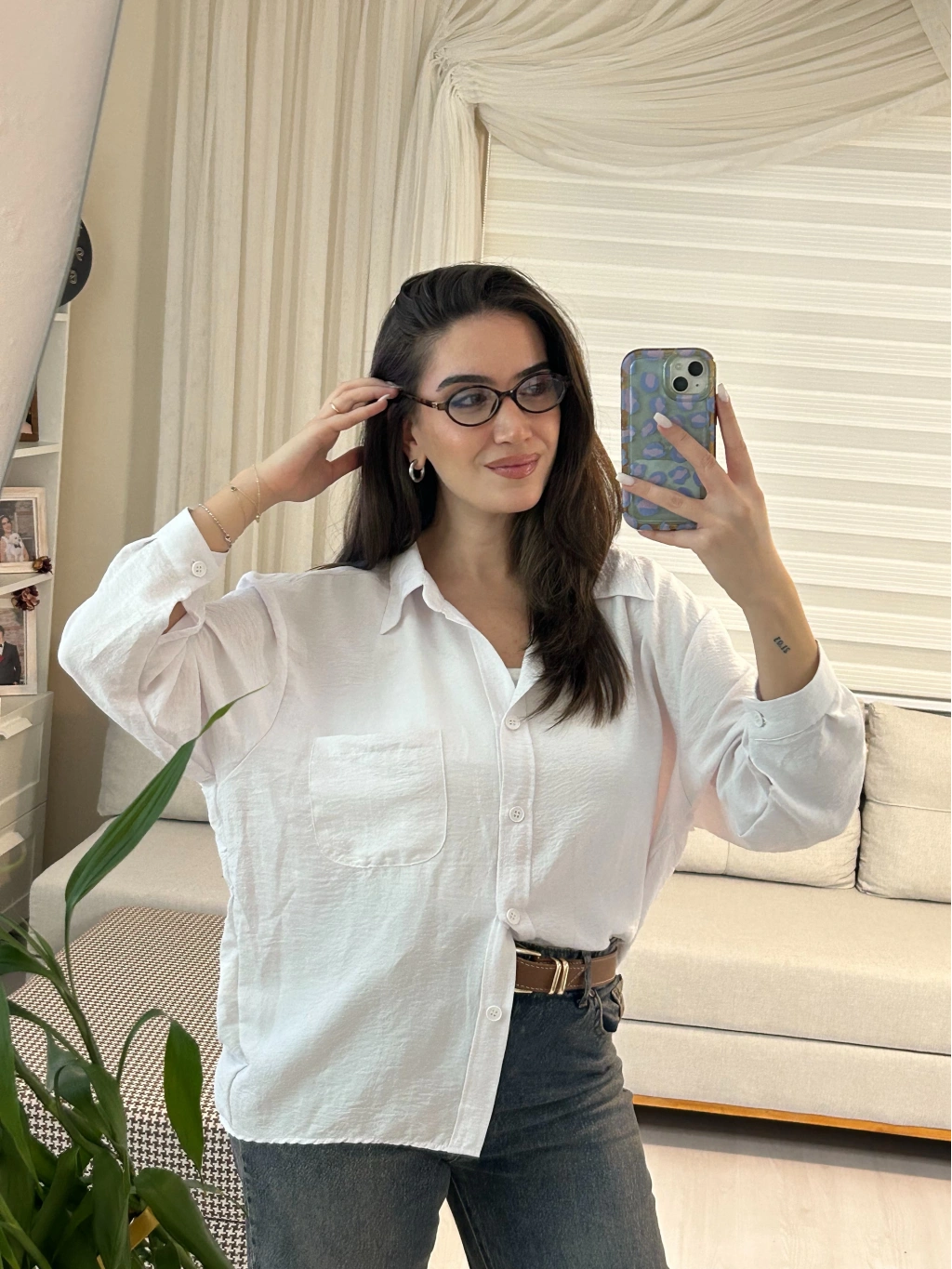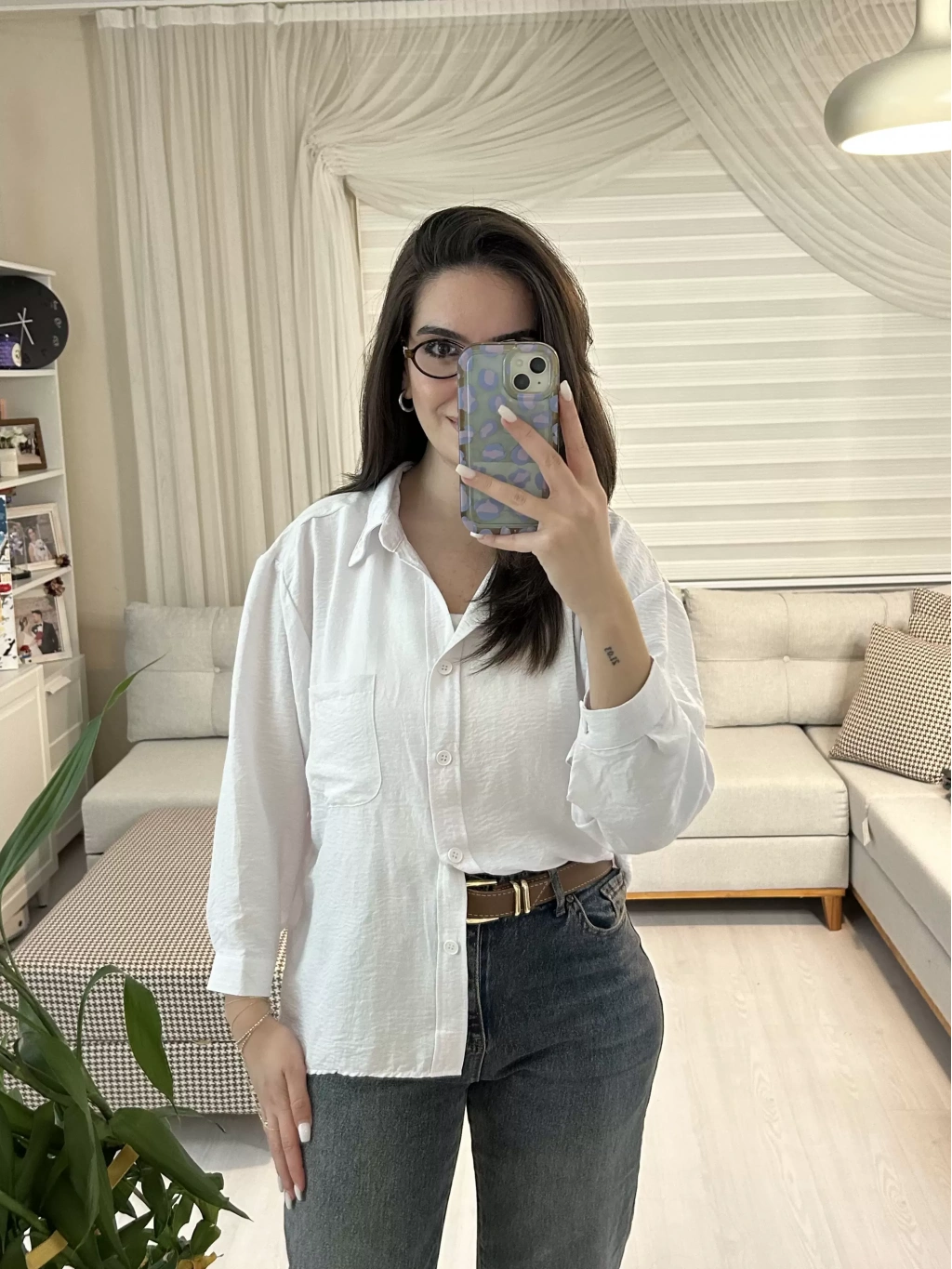 Kadın basic beyaz gömlek, hafif ve konforlu kumaşıyla günlük kullanıma uygundur. Şık tasarımı sayesinde hem günlük kombinlerde hem de iş hayatında tercih edilebilir.