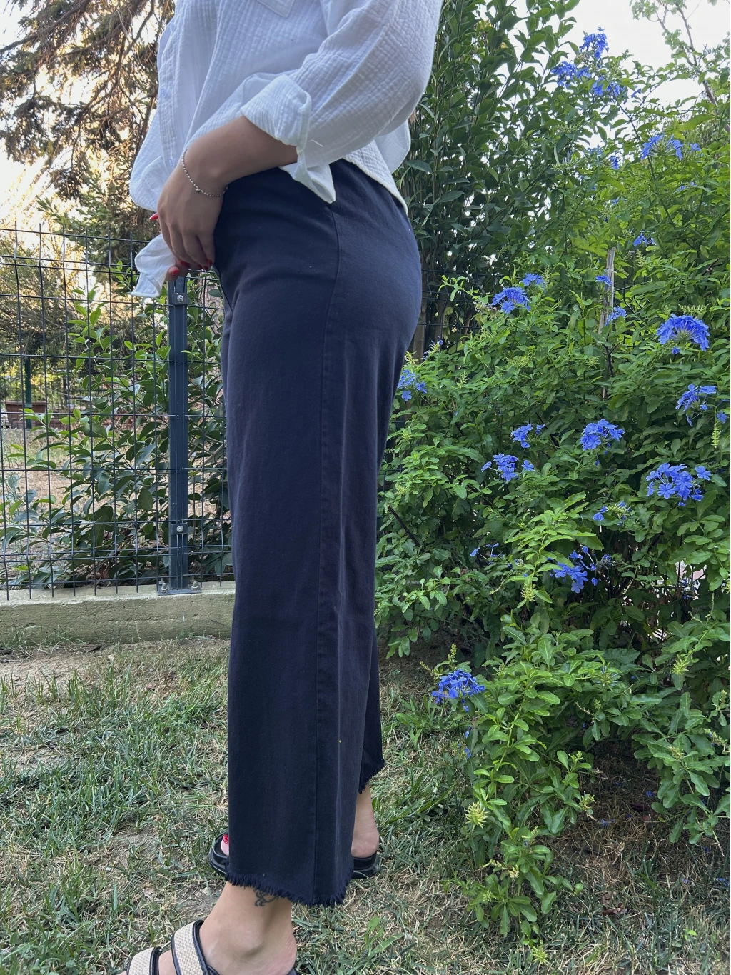 Kadın siyah paça püsküllü pantolon, günlük ve şık kombinlerde rahatlıkla kullanılabilecek zamansız bir parçadır. Rahat kesimi sayesinde konfor sunarken, püsküllü paça detayı modern bir görünüm kazandırır. Düz renk yapısıyla her tarz üst giyimle kolayca kombinlenebilir.
