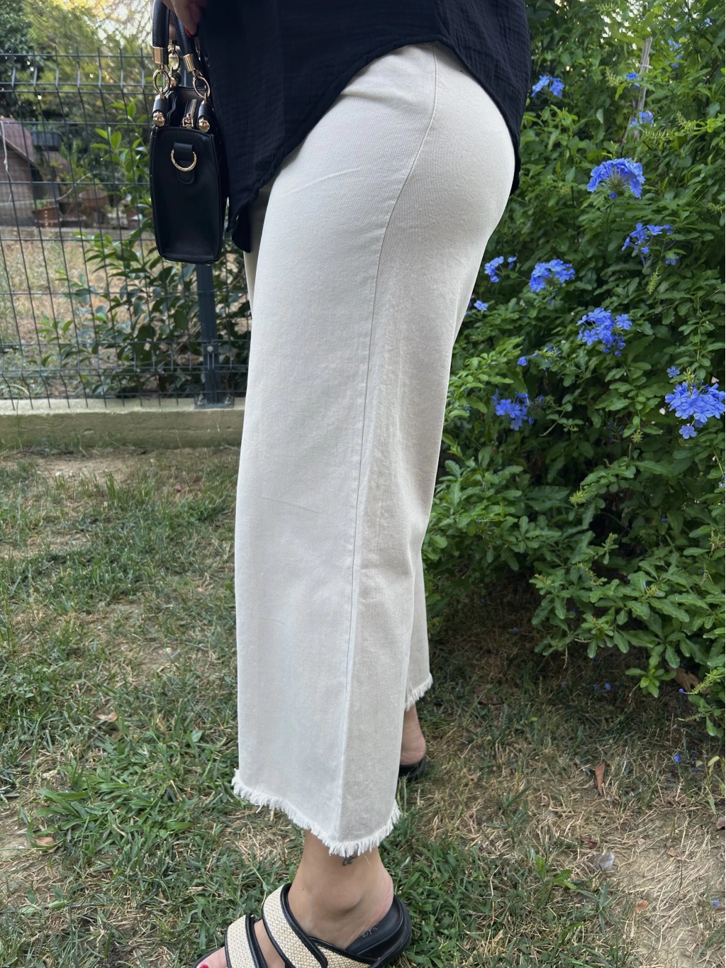 Kadın taş renk püskül paça pantolon, rahat kesimi ve şık görünümüyle günlük kullanım için idealdir. Yumuşak dokusu sayesinde konforlu bir deneyim sunarken, paça püskül detayı ile modern bir stil oluşturur. Hem spor hem de şık kombinlerle uyum sağlar.