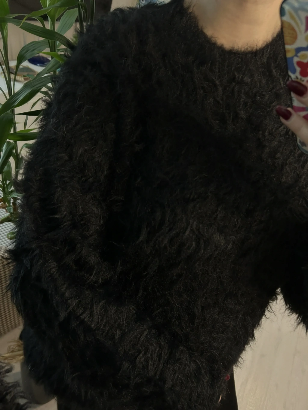 Detay: Uzun sakallı tüylü yüzey, ekstra yumuşak peluş his, ribana yaka-kol ve etek ucu