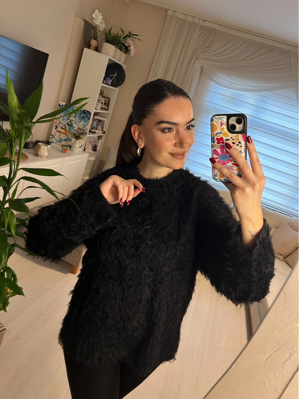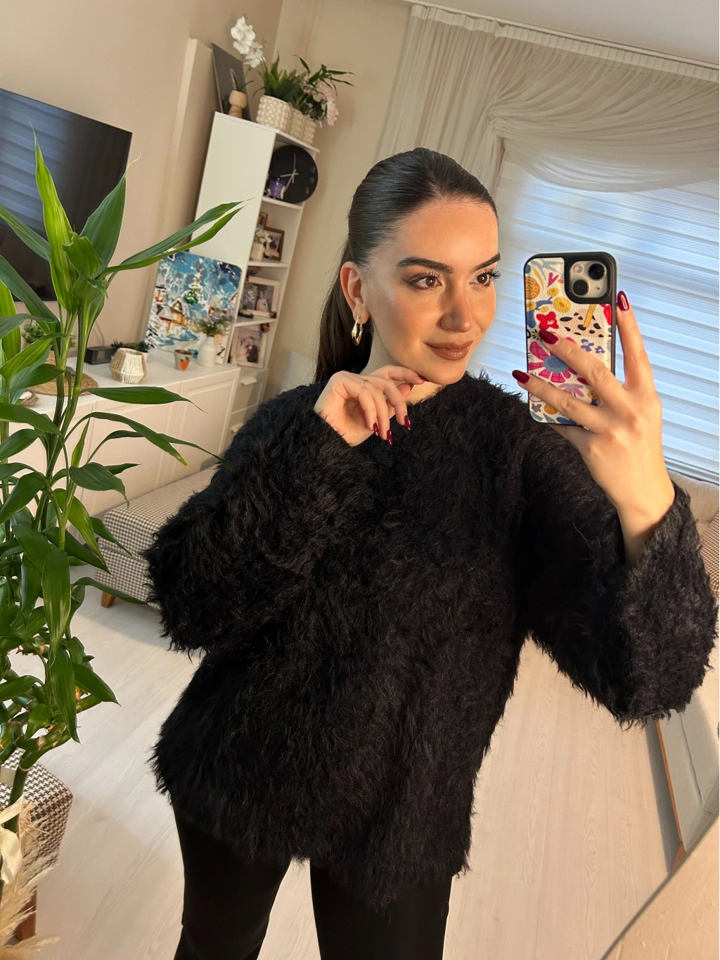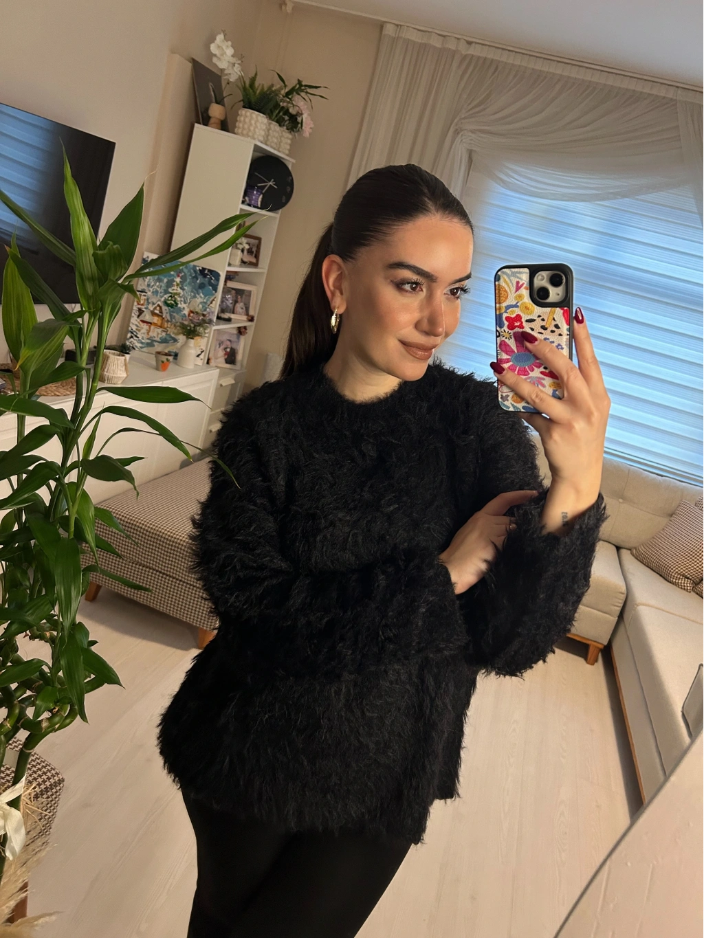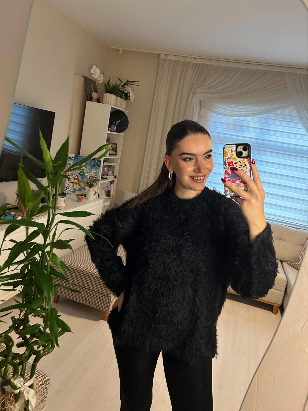 Selen Fashion’ın en iddialı parçalarından biri. Tüylü dokusuyla hem şık hem de inanılmaz rahat. Siyahın asaletini yumuşacık bir hisle buluşturuyor.